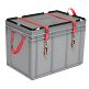 Behälter für Gefahrgut RAKO GGVSEB, PP, Behälter silbergrau, Deckel dunkelgrau, aussen 600x400x441 mm, innen 558x358x398 mm, 84.0l, Verpackungsgruppe I-III, Bruttohöchstmasse 30.0 kg, Schaumstoffeinlage, in Deckel, eingeklebt, Prägung ab Cliché, auf einer Kurzseite, eingemittet, schwarz, Traggurt, auf beiden Kurzseiten, angenietet, Spanngurte mit Klemmschloss, an Behälter aussen, angenietet