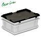 Hinged lid Oeco-Line, PP UIC, black, ext. 300x200x28 mm, with snap locks, with 4 notches for strapping belts, to RAKO 300x200 mm, EAN label, Nr. 6035.937